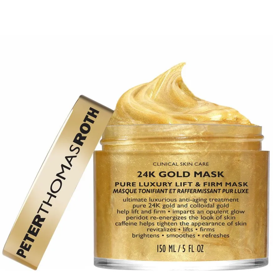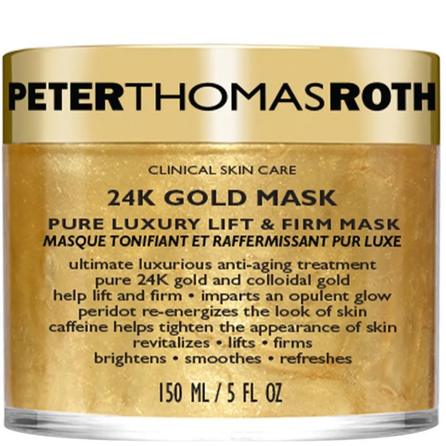 24K Gold Mask fra Peter Thomas Roth er det ultimate innen luksuriøs anti-aging-behandling. Masken er infundert med rent 24k gull og kolloidalt gull for å forbedre utseendet av fasthet og gi en overdådig ungdommelig glød.