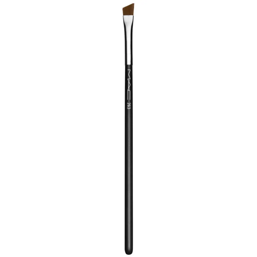 Small Angle Brush er en sminkekost til å trekke opp linjer eller forme øyne eller øyenbryn. Flat form med vinklet spiss. Distribuerer fargen jevnt over øyelokket og i øyekrokene. Laget av syntetiske fibre. Fungerer med alle typer øyenfarge. MACs profesjonelle børster er håndlaget og sammensatt av de beste kvalitetsmaterialer. Børstene har håndtak av tre og nikkelbelagte messinghylster.