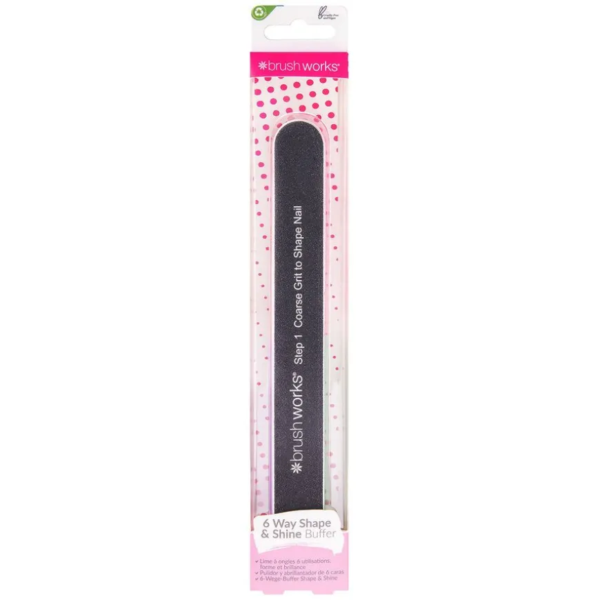 Få perfekte negler med 6 Sided Nail File Shape & Shine fra Brushworks. Dette mulitverktøyet av en neglefil lar deg både forme neglene og gjøre dem glatte og skinnende. Den øker neglens naturlige oljeproduksjon samtidig som riper fjernes.