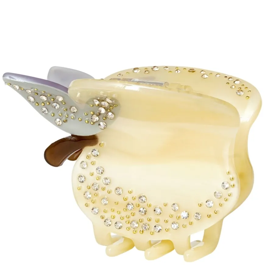 Abelta Hairclaw Pear Sorbet fra Maanesten fanger essensen av feminin energi med sitt blomsterinspirerte design. Hårklypen er laget av acetat og jern med miljøvennlig elektrobelegg, utsmykket med glitrende rhinestones som tilfører et subtilt, luksuriøst preg. Med sin delikate form oppmuntrer den deg til å omfavne følelsene dine og la selvtilliten blomstre. Med en bredde på 7,5 cm og en høyde på 3 cm gir den et sikkert grep samtidig som den bevarer et elegant uttrykk. Perfekt for både hverdag og spesielle anledninger.