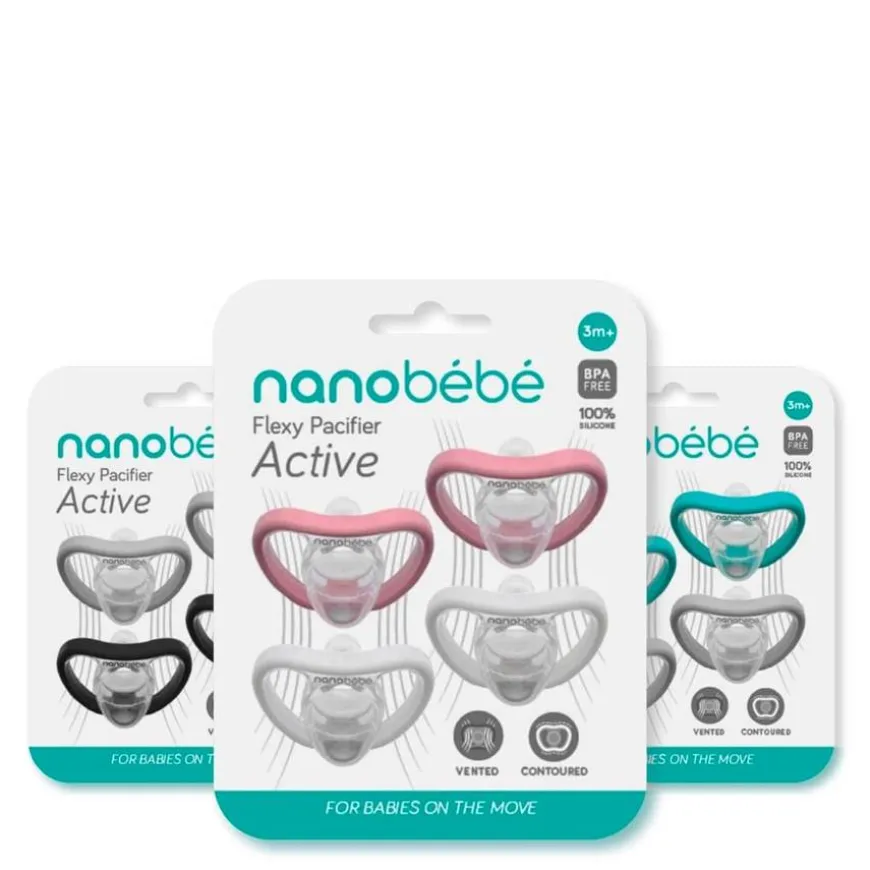 Nanobébé’s bestselgende Flexy-smokk har kommet med et helt nytt trinn for aktive babyer på 4mnd+ på farten!