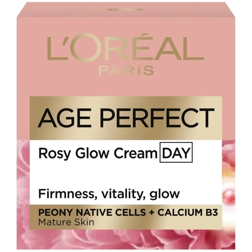 L’Oréal Paris Age Perfect Rosy Glow Day Cream passer til moden hud som trenger glød, fukt og ny vitalitet. Formelen er beriket med en unik kombinasjon av rosa pigmenter som umiddelbart forskjønner hudtonen, samt antiage-ingredienser som virker effektivt på hudens struktur og glød. Kremen gir fukt og styrke, og aktiverer gløden allerede fra første påføring. Etter 4 timer er huden 33 % mer spenstig*, og etter 4 ukers bruk fremstår ansiktskonturene som tydeligere og slapp hud mindre fremtredende. Hele 100 % av kvinnene i en studie opplevde forbedret rosa glød**. Kremen inneholder essensielle næringsstoffer som kalsium og vitamin B3, som styrker hudens barrierefunksjon, samt peony native cells – en ingrediens av naturlig opprinnelse eksklusiv for L’Oréal frem til 2032 – som stimulerer hudens naturlige glød. *Instrumentell test, 40 personer. **Kosmetoklinisk studie, 42 personer.