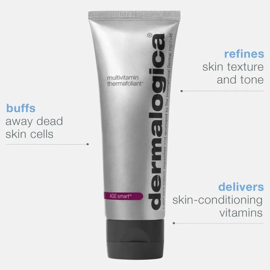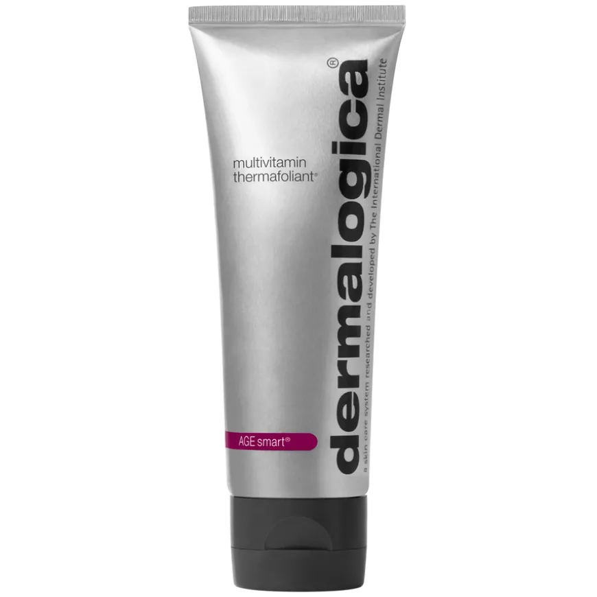 Multivitamin Thermafoliant er en selvvarmende eksfoliant som forbedrer hudstrukturen ved hjelp av aldersbekjempende ingredienser.Anbefalt av Dermalogica for smart behandling og forebygging av hudaldring. Effektiv skrubb som kombinerer fysiske og kjemiske eksfolianter for å jevne hudstrukturen og bidra til økt opptak av vitaminer som forebygger hudaldring. Mikroeksfolierende korn fjerner gusten hud på overflaten og gir umiddelbar glød. En unik termalteknologi aktiveres i kontakt med vann (produktet føles varmt) for å stimulere opptaket av salisylsyre og retinol for en glattere hud. Ekstrakt fra kaktusfiken øker hudens naturlige eksfolieringsprosess og hvit te beskytter mot nedbrytning av hudens kollagen. Lakris, C- og E-vitamin lysner hudtonen, beskytter mot frie radikaler og virker oppstrammende. Huden føles og ser umiddelbart glattere ut. Uten kunstig farge eller duft.Produktet er vegansk og cruelty-free.