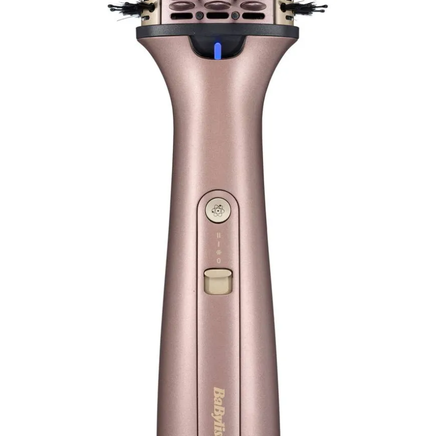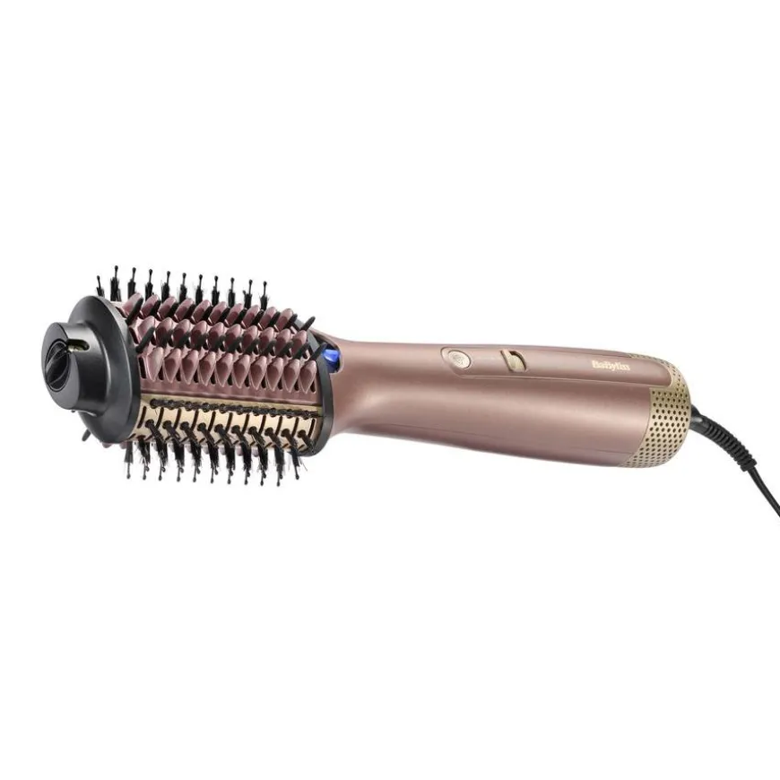 - Oval sylinder med stor stylingflate har fleksibel bust som gir perfekt grep og kontroll i håret, slik at det kan formes og styles raskt og enkelt fra rot til tupp.