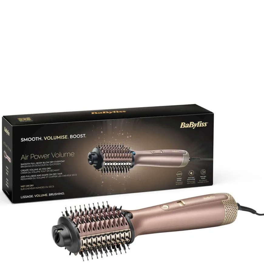 Air Power Volume er en varmluftsbørste designet for å gi håret volum og glans. Skap volum og glatt ut håret for å lage en stor og spretten frisyre med enten vått eller tørt hår. Velg tørkemodus for å minimere luftstrømmen, og Air Volume kan brukes til å forme og gi volum til tørt hår når det trenger et løft. Perfekt for en oppfriskning på ettermiddagen eller på dag to. Tre års garanti.
