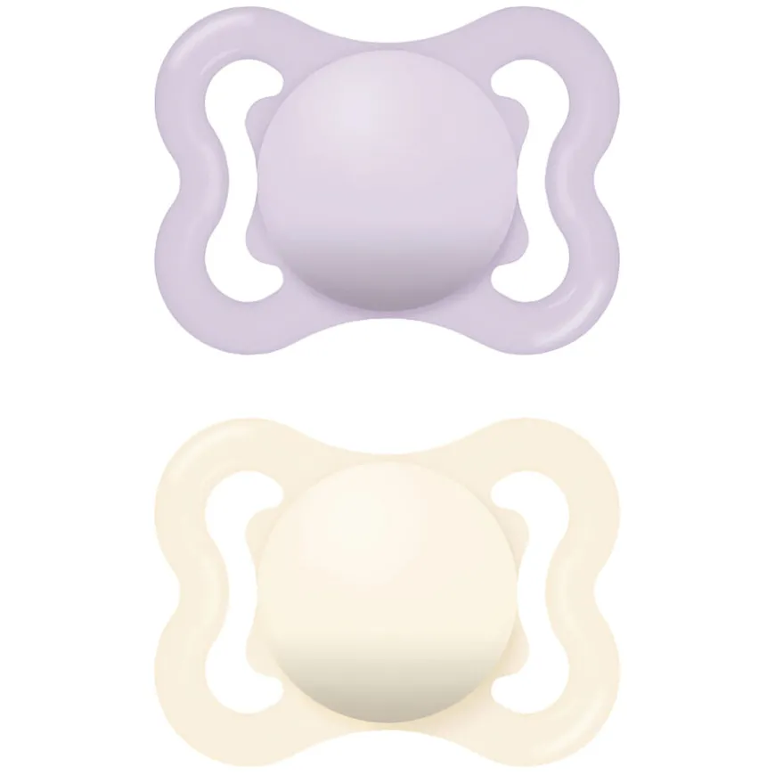 MAM Air har en flat, symmetrisk smokk og ekstra store lufthull slik at babyens følsomme hud kan puste. Den spesielle utformingen gjør også at foreldrene kan se barnets smil, selv når smokken er i bruk. Smokken er laget av silkemyk silikon, MAMSkinSoftTM-silikon som føles myk og velkjent, akkurat som mammas hud, og som godtas av 94 % av babyene*. MAM ønsker det beste for babyen din og planeten vår. Derfor er skjoldet, knoppen og steriliseringsboksen laget av biosirkulære materialer**.