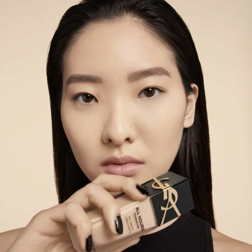 Yves Saint Laurent All Hours Foundation holder i 24 timer. Den føles ren og er beriket med hyaluronsyre. Produktet gir full dekning og gir en vektløs og pustende følelse. Opplev en ultrasanselig følelse av hud mot hud med jevn dekning, som om du hadde perfekt, naken hud. Den fukter huden hele dagen og pleier den – selv etter at du har fjernet den. Produktet smitter ikke av, er vannfast og svetteresistent.
