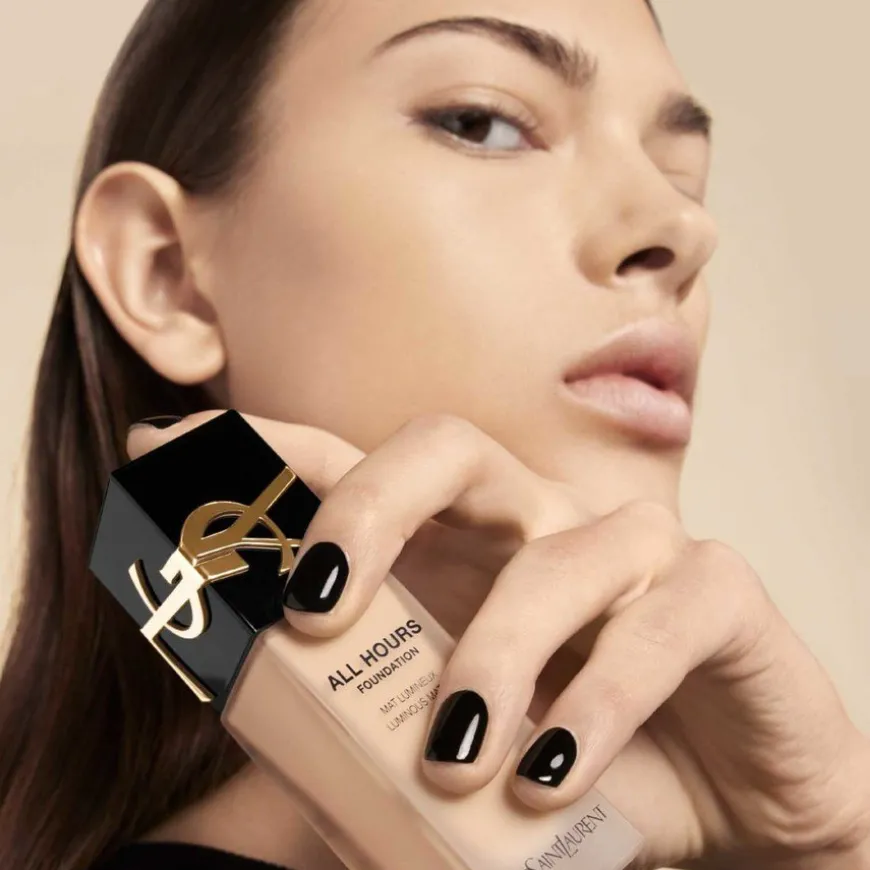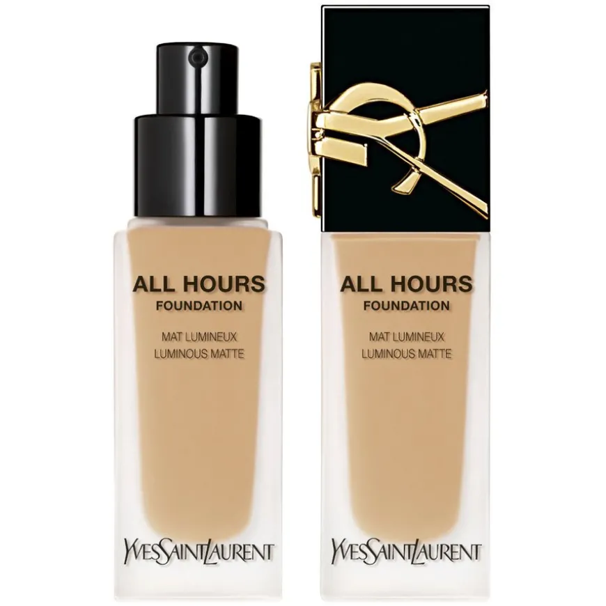 Yves Saint Laurent All Hours Foundation holder i 24 timer. Den føles ren og er beriket med hyaluronsyre. Produktet gir full dekning og gir en vektløs og pustende følelse. Opplev en ultrasanselig følelse av hud mot hud med jevn dekning, som om du hadde perfekt, naken hud. Den fukter huden hele dagen og pleier den – selv etter at du har fjernet den. Produktet smitter ikke av, er vannfast og svetteresistent.