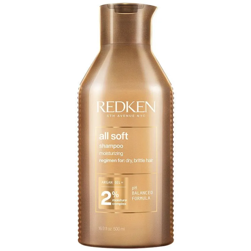 Redken All Soft Shampoo inneholder Redkens Moisture Complex og arganolje. All Soft-shampooen mykgjør og fukter håret fra rot til spiss. Denne shampooen rengjør og etterlater håret silkemykt med forbedret håndterbarhet, smidighet og glans.