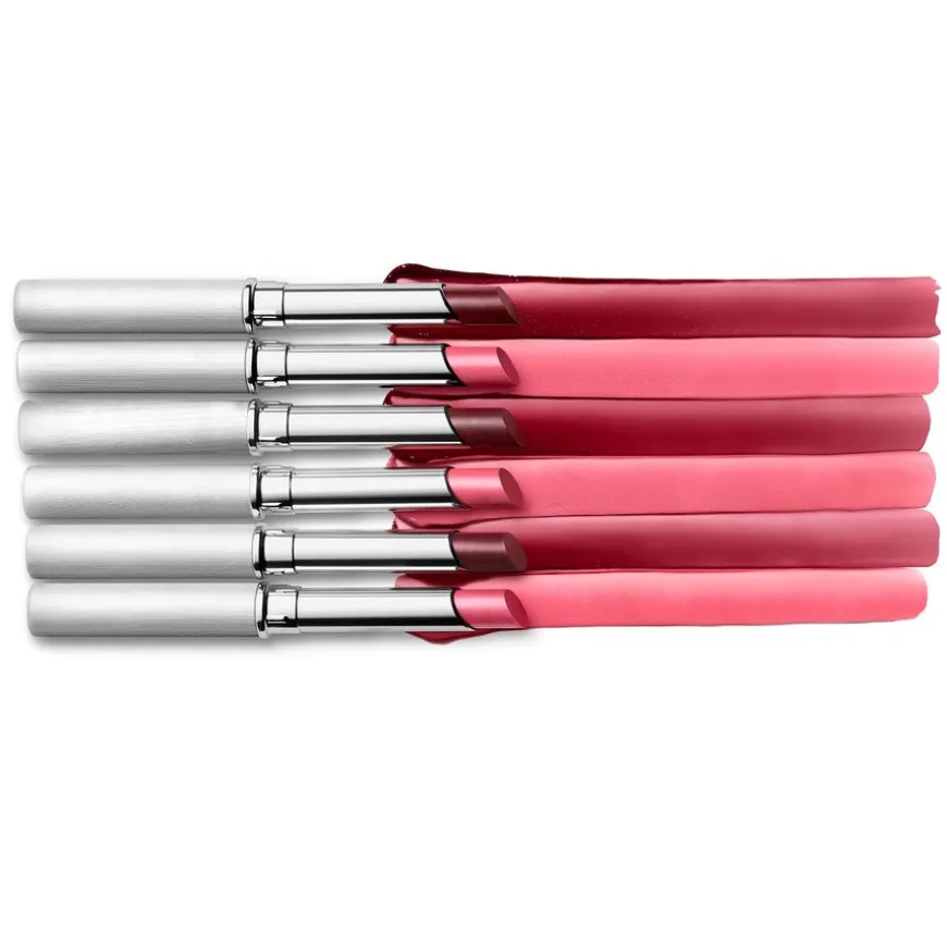- Kombinerer fordelene ved en leppestift, farget leppebalsam og leppegloss.