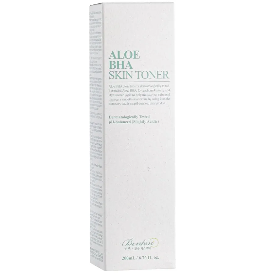 Aloe BHA Skin Toner er en av Bentons bestselgere fordi den effektivt, men skånsomt, forebygger og lindrer ulike hudtilstander som akne, rødhet, tørrhet på overflaten, ubalansert hud, tilstoppede porer med mer. I stedet for vann, består dette ansiktsvannet av 80% aloe vera-juice som fukter og beroliger huden. En lav prosentandel BHA-syre på 0,5% gir en mild eksfoliering og løser opp talg i porene, samt virker antiinflammatorisk. Passer alle hudtyper, inkludert sensitiv hud.