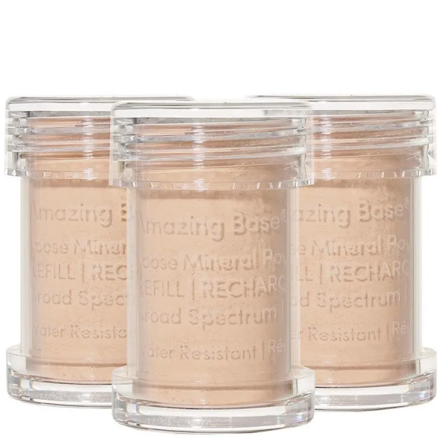 Amazing Base Refillable er enlett og oljefri løs mineralfoundation med bredspektret solfaktor 20, i en miljøvennlig, vegansk gjenbrukskost.