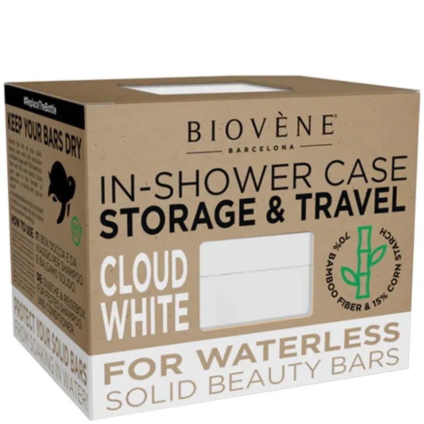 Denne dusjkassen passer til flere solide skjønnhetsbarer, for eksempel tre solide Biovène Shampoo eller Conditioners. Hold baren din frisk og vakker, vask den en gang i måneden med såpe og varmt vann og la den tørke.