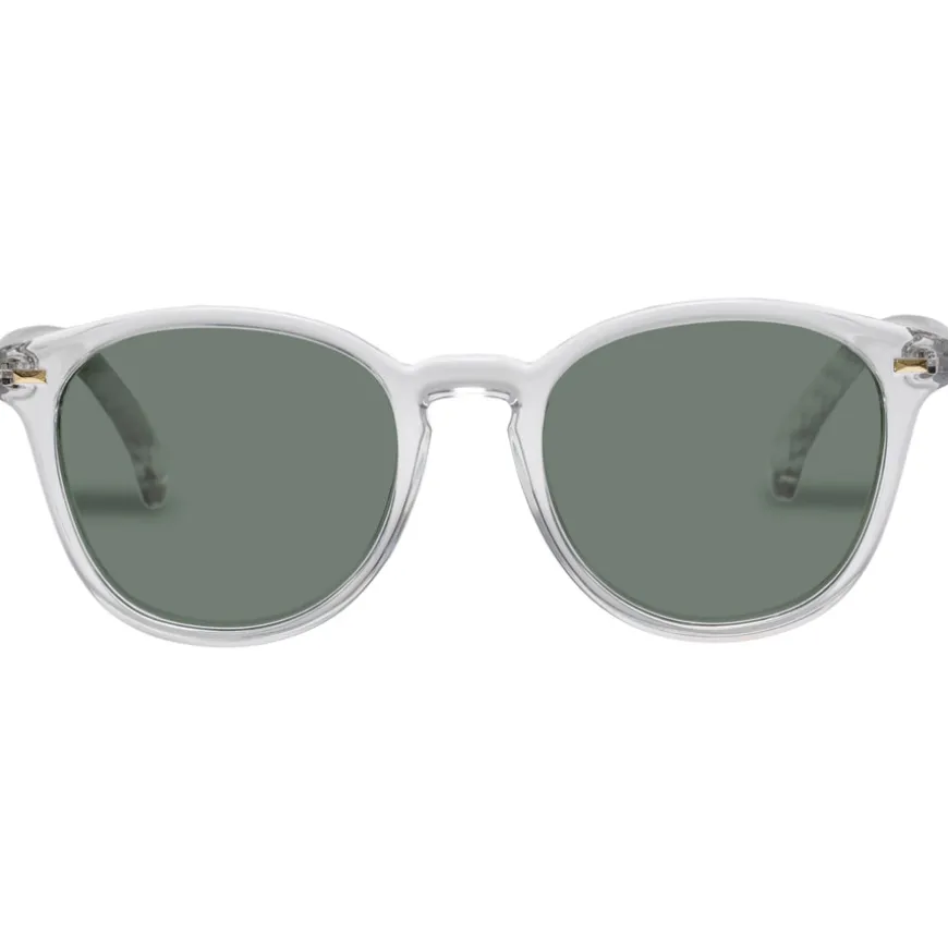 Le Specs Bandwagon er en ikonisk rund solbrille med en klassisk og tidløs estetikk. Den midtstørrelse-passformen, nøkkelhullsbroen og de raffinerte vinklene gir en flatterende unisex-look, mens de subtile metallnaglene og Le Specs flagstripe-detaljer i metall på stengene tilfører en sofistikert finish.
