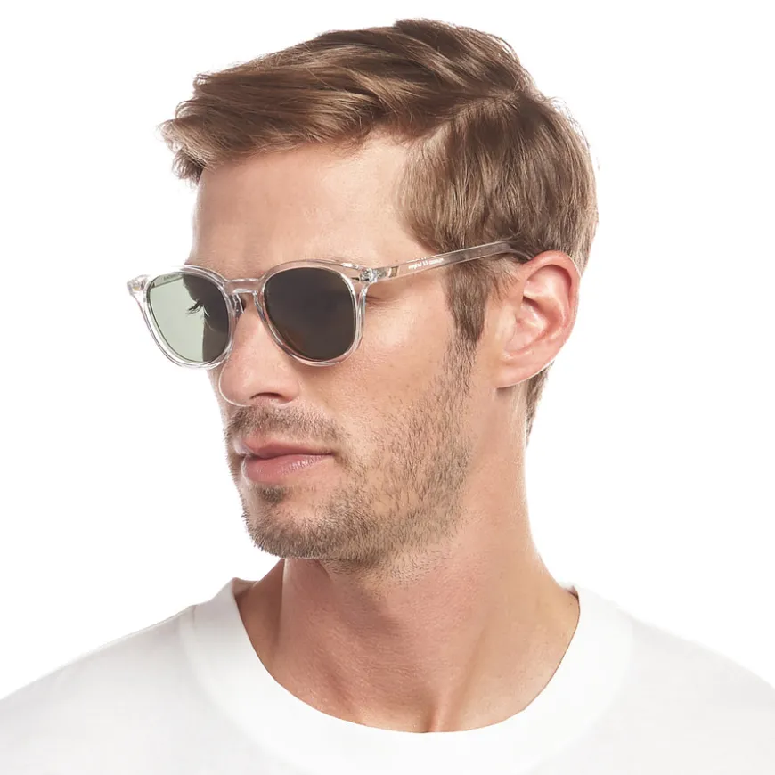 Brillen har en gjennomsiktig krystallklar ramme kombinert med polariserte khaki mono-linser, som effektivt reduserer gjenskinn og forbedrer visuell klarhet. Laget av lett, slitesterk og støtbestandig polykarbonat, er den ideell for daglig bruk. De knuse- og ripebestandige polykarbonatlinsene sikrer holdbarhet og skarphet.