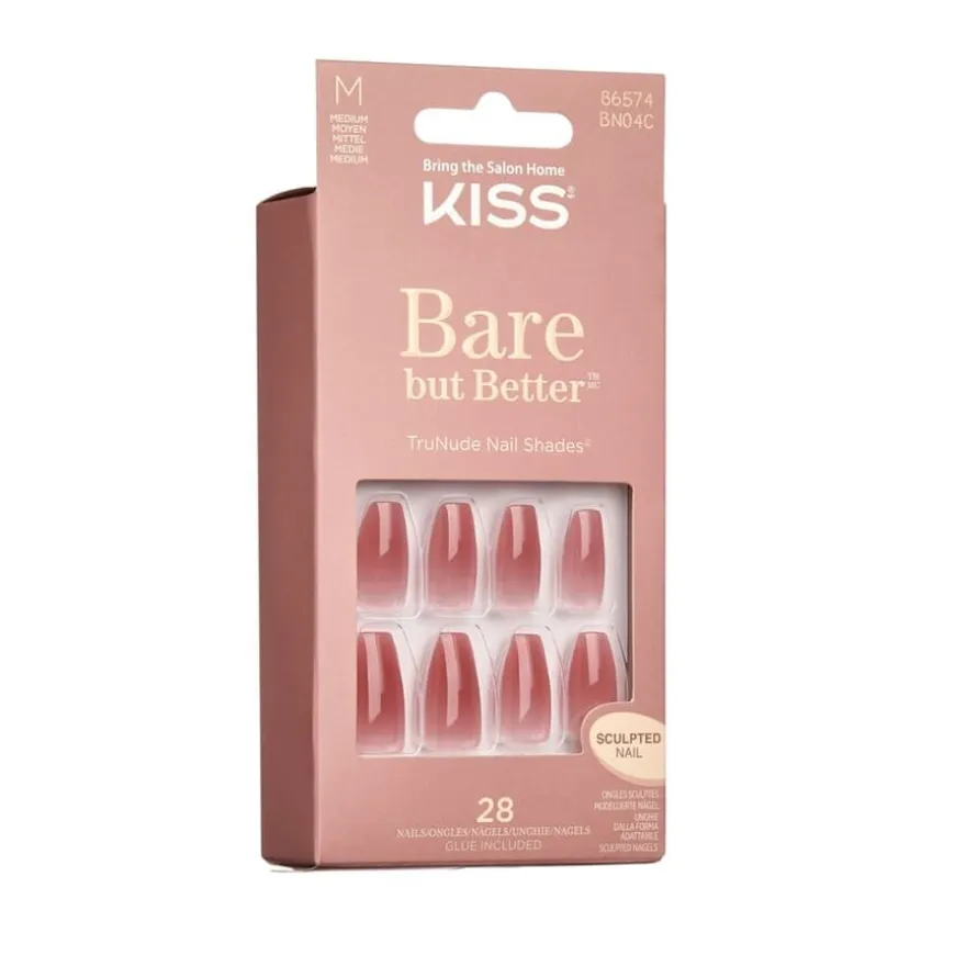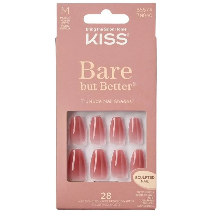 Bare But Better Nude Nude Nails er et sett med kunstige negler fra KISS, designet for å gi en naturlig og sofistikert manikyr. Disse rosa geléneglene har kort lengde og oval form, noe som gir et diskret og elegant utseende. Neglene er laget av høykvalitets ABS-plast, som gir en slitesterk og fleksibel finish. Pakken inneholder 28 negler i ulike størrelser, Pink Gel Glue (2g), en minifil og en manikyrpinne. Neglene er enkle å påføre og fjerne, og de holder seg perfekte i opptil 7 dager. Produktet er flisefritt, flekkfritt og vanntett, og passer for alle som ønsker en rask og enkel løsning for velstelte negler.
