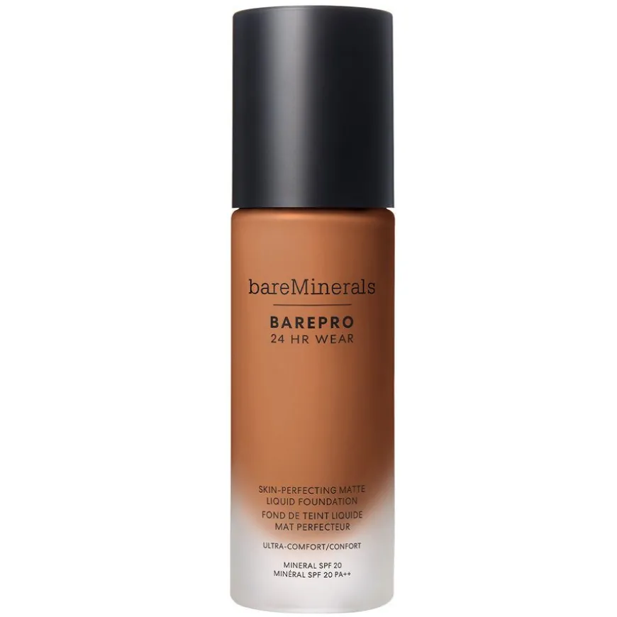 BAREPRO 24H Matte Comfort Liquid Foundation er en hudforbedrende 24-timers-foundation som gir en uoppdagelig, full-dekkende og matt finish og ultrakomfortabel varighet. Tilgjengelig i 40 nyanser. BAREPRO® 24HR Wear flytende foundation er en unik formel mettet med hudtonelignende pigmenter, oljeabsorberende mineraler og ingredienser som huden elsker, for å gi pustende, uoppdagelig dekning som holder seg.