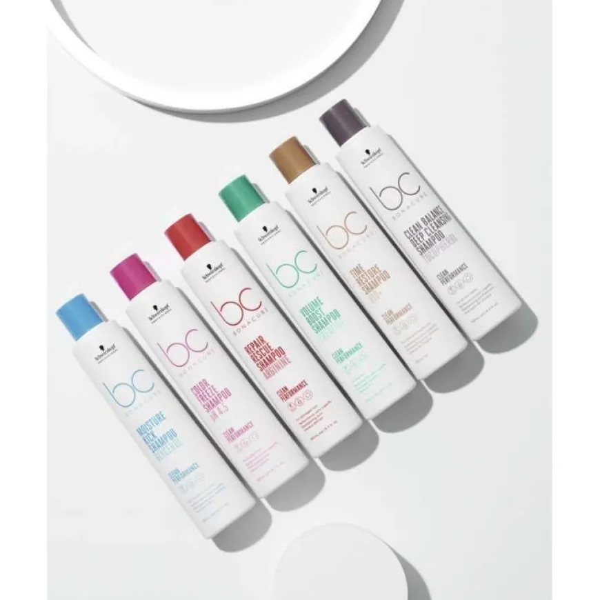 BC Bonacure Volume Boost Shampoo er en rensende shampoo for tynt og fint hår. Fjerner skånsomt overflødig olje og rester som kan tynge. Pleiepolymerer forhindrer statisk elektrisitet og gir bedret håndterbarhet mens emulgatorer sørger både for den gellignende konsistensen samt fyldigere følelse og motstand. Sammensetningene med Kreatin gjenoppretter hårfibrene og kombinert med med Cell Equalizer glattes håroverflaten for smidighet, håndterbarhet, spenst og glans. Håret får volum og fylde i opptil 48 timer. Serien forbedrer volum ihvert enkelt hårstrå.