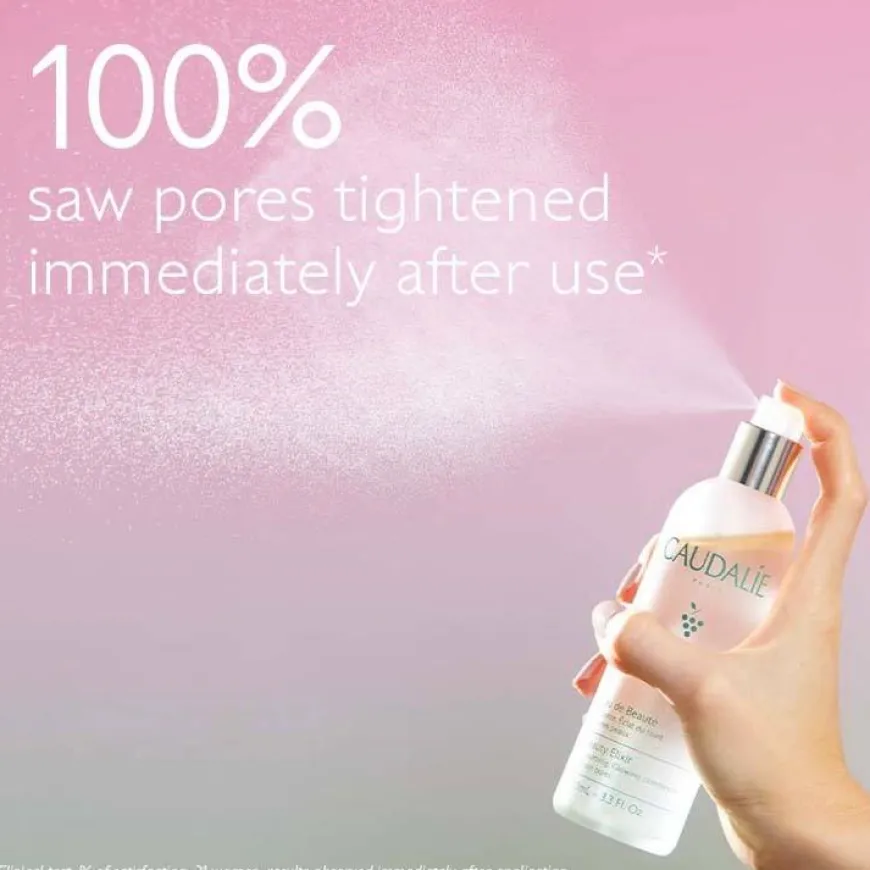 Caudalie Beauty Elixir er en plantebasert ansikts-mist som glatter ut fine linjer, strammer inn porer og gir huden en umiddelbar glød. Består av 100% naturlige ingredienser, og kan også benyttes som setting-spray. Misten er en av Caudalies kult-produkter, og er foretrukket av en rekke makeup-artister, «beauty junkies» og kjendiser. Passer for alle hudtyper, en bestselger.