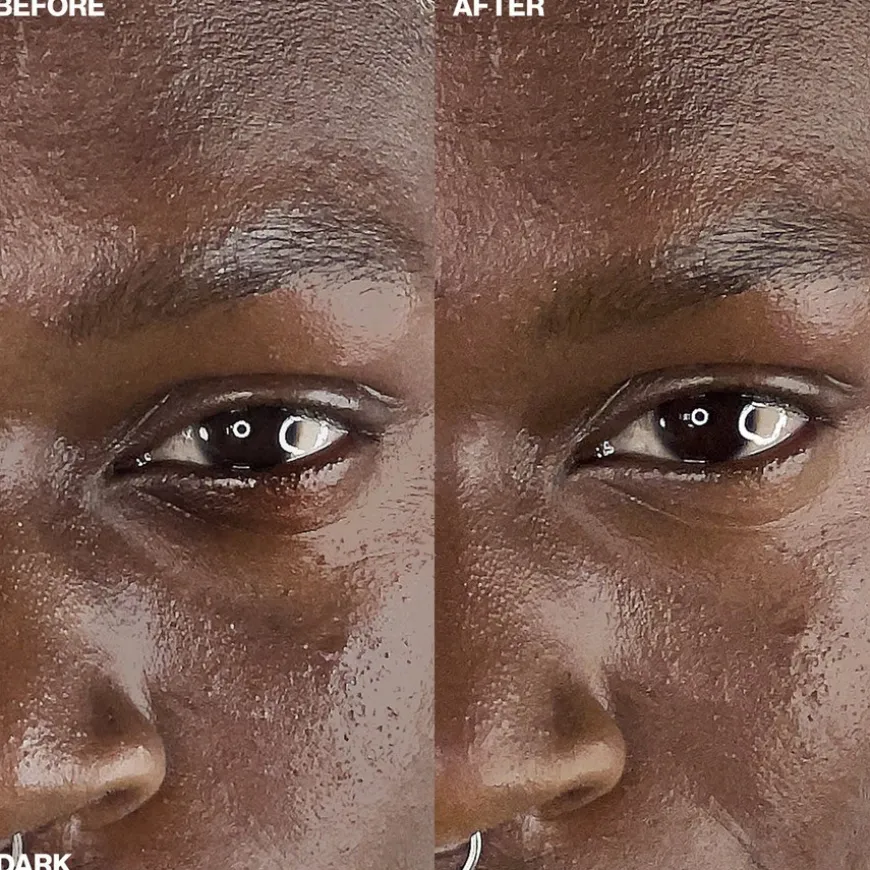 - Fargen korrigerer mørke ringer.