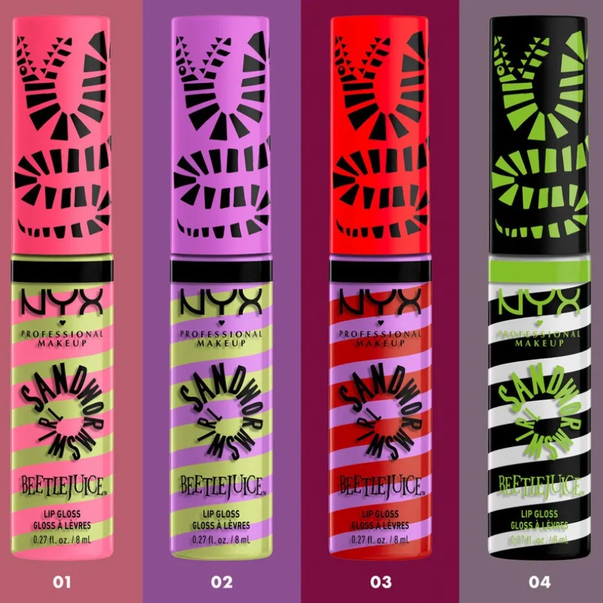 Beetlejuice Sandworm Swirl Butter Gloss er en lipgloss fra NYX Professional Makeup. Vær forsiktig, sandormer i sikte! Gjør deg klar til å gi leppene farge og glans med en rekke perfekte Butter Gloss i limited edition-nyanser fra NYX Professional Makeup, inspirert av den nye BEETLEJUICE-filmen Lipglossene passer til alle og kan til og med brukes oppå andre leppefavoritten for å gi en ekstra glansfull finish.
