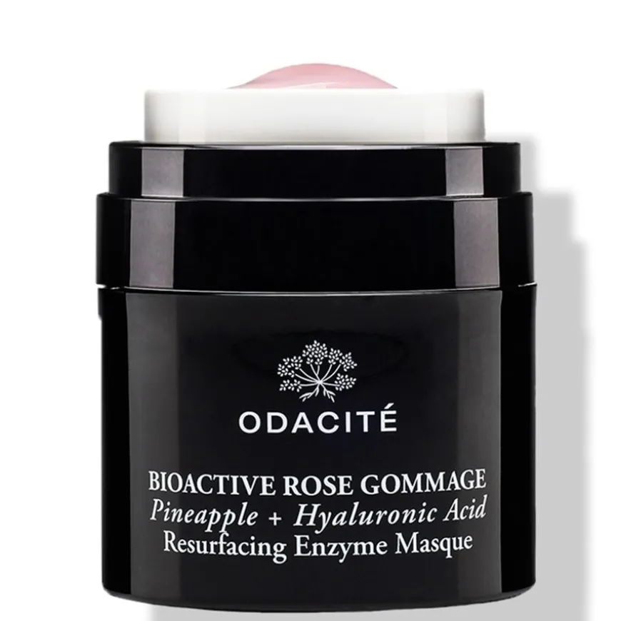 Bioactive Rose Gommage er en profesjonell bioaktiv peeling som fornyer huden og fjerner døde hudceller uten irritasjon. Drevet av papaya- og ananasenzymer, lysner den hudtonen og forbedrer hudens tekstur, samtidig som den minimerer synligheten av porer. Hyaluronsyre gir fuktighet og løsner opphopning av døde hudceller, mens konjakkrot renser huden dypt for en frisk og klar hud. Den kjølende bioaktive gelen påføres jevnt med den medfølgende ansiktsbørsten og gir en spa-lignende opplevelse med en duft av friske roser.