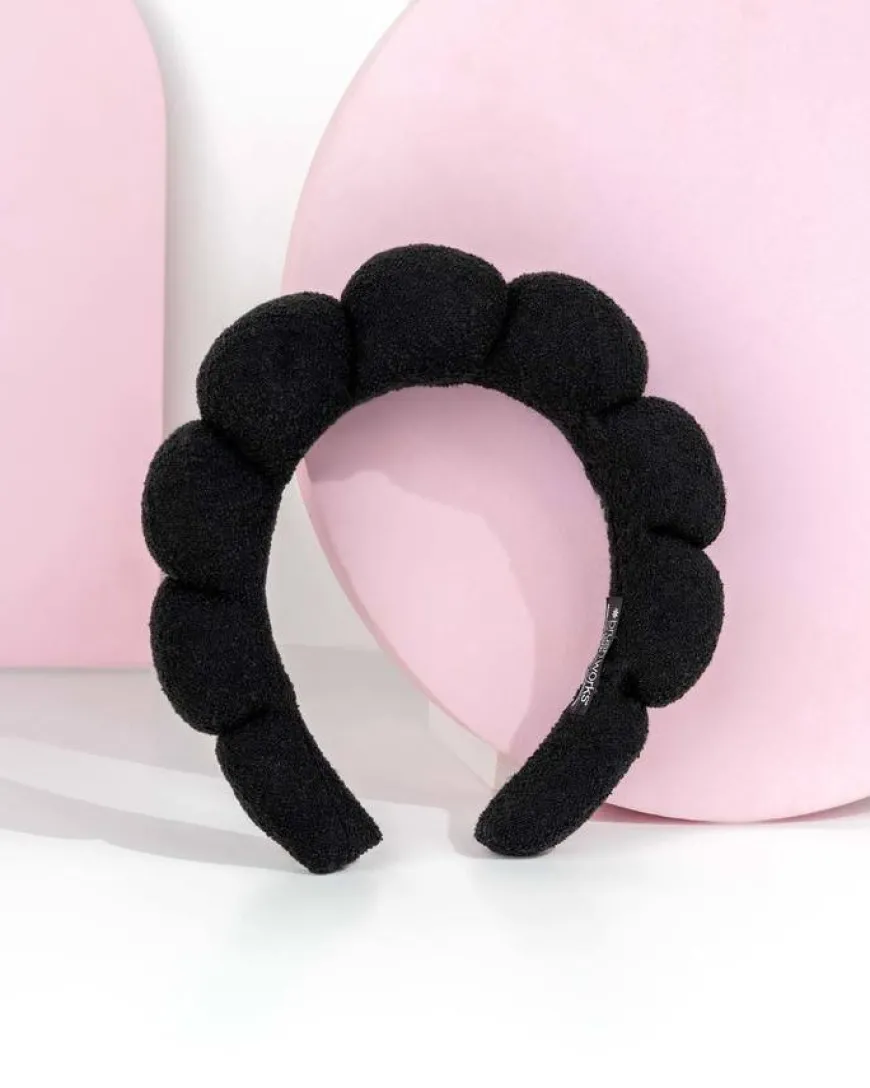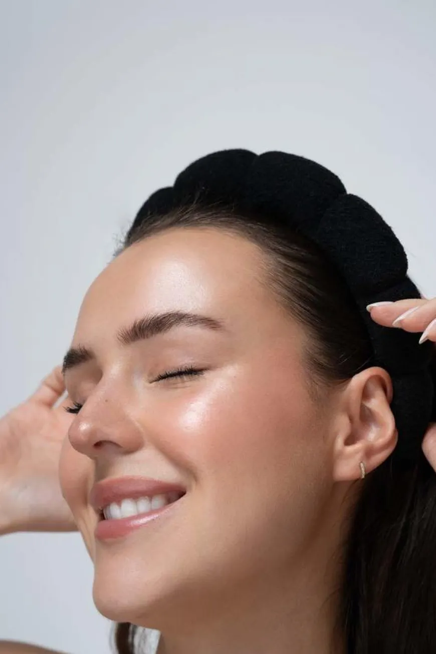 Black Cloud Headband er et luksuriøst frotté-hårbånd som er perfekt for å holde håret borte fra ansiktet samtidig som det gir en spa-lignende opplevelse. Hårbåndet er laget av mykt og absorberende froté, noe som holder håret ditt trygt og tørt mens du renser ansiktet ditt. Dette hårbåndet er både komfortabelt og stilig – det perfekte tillegget til skjønnhetsrutinen din!