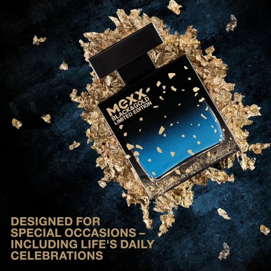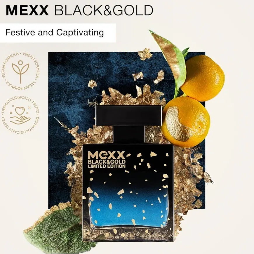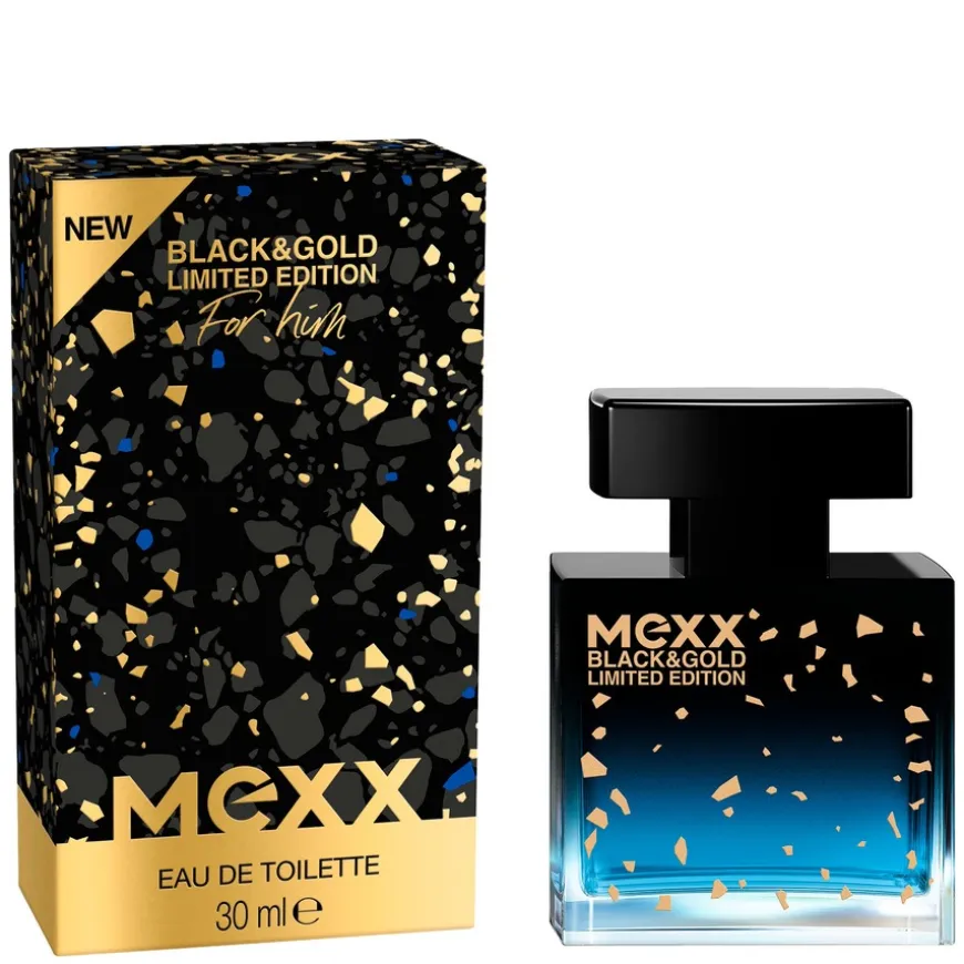 Mexx Black & Gold, en solid, firkantet flaske prydet med gullflak, skiller seg virkelig ut, fylt med en midnattblå væske for å feire livets øyeblikk. Gjør enhver anledning gnistrende og varig med den nye Limited Edition Eau de Toilette For Menn Black & Gold.