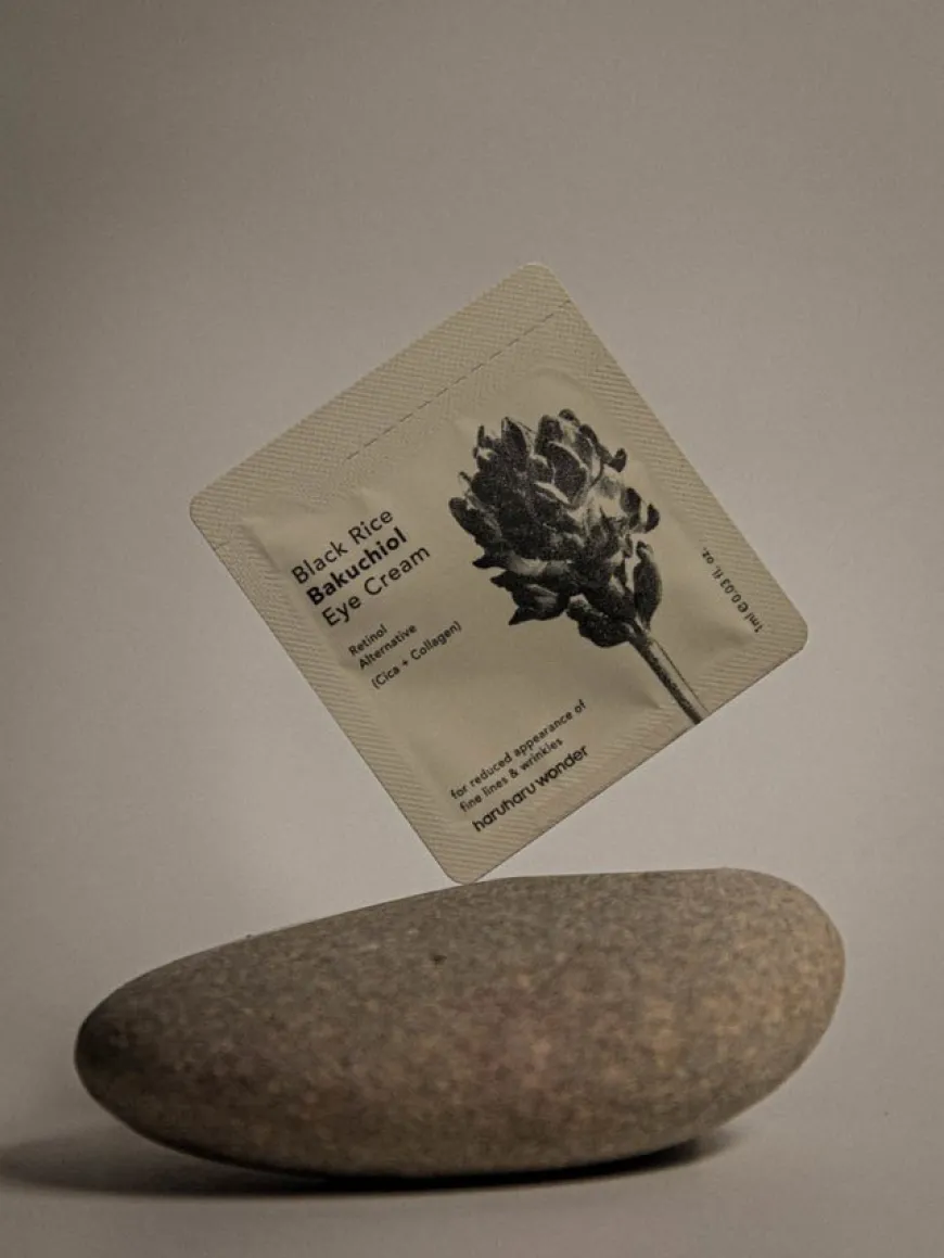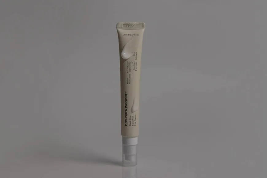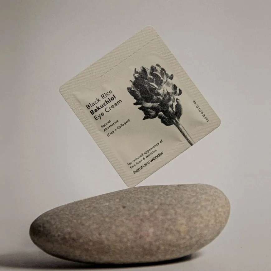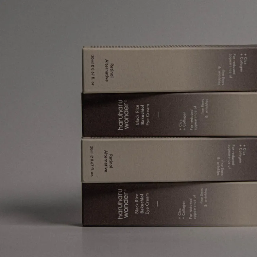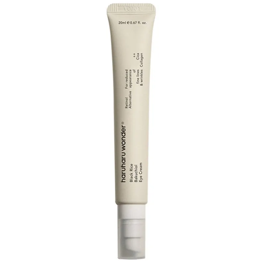 haruharu wonders Black Rice Eye Cream er en vegansk øyekrem med fermentert svart ris, bambusskuddbarkekstrakt og planteavledet Bakuchiol (retinolerstatning).