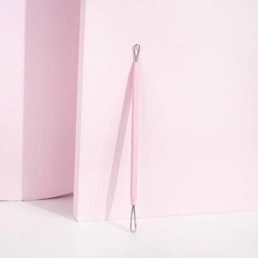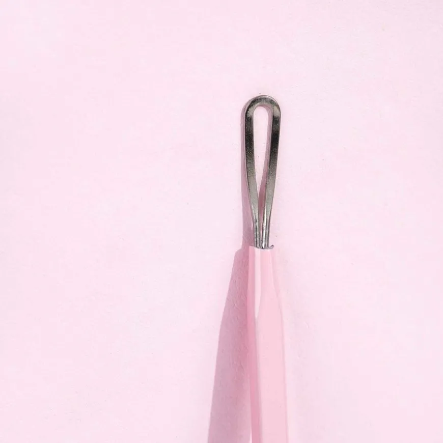 Blackhead Remover Tool er et effektivt hudpleieverktøy for å fjerne hudormer og urenheter. Den er laget av rustfritt stål i høy kvalitet og har en tynn vinklet løkke for å rulle ut urenheter og en flat side for å skyve ut hudormer.
