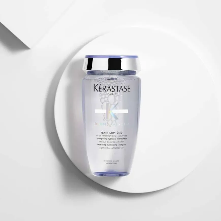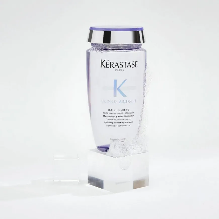 Kérastase Blond Absolu Bain Lumière er en fuktighetsgivende lysreflekterende Shampoo. Shampooen ertilsatt hyaluronsyre og er spesialtilpasset bleket, grått og stipet blondt hår. Denne skånsomt rensende formelen gjør håret glatt og glansfullt fra rot til tupp, gir håret en lett følelse og gjør de blonde tonene klarere. Den renser håret for forurensende stoffer som kan gjøre at håret virker livløst. Formelen er beriket med en effektiv kombinasjon av hyaluronsyre og edelweiss-blomst, og har en høy konsentrasjon av antioksidanter som hindrer at håret brekker og beskytter fibrene. Hyaluronsyre fukter blondt hår og gjør hvert hårstrå glattere. Håret gjøres klart for pleie med en strålende glans.