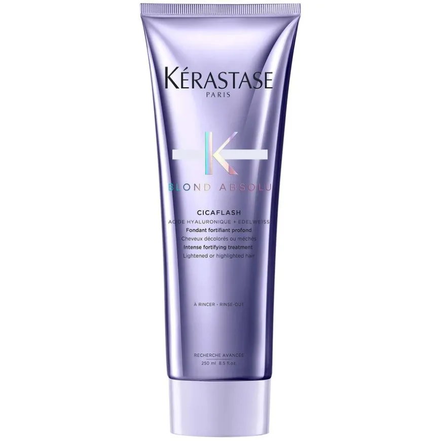 Blond Absolu Cicaflash er en melkeaktige gele med en myk lavendelfarge som reparerer håret som en maske, samtidig som den er like lett som en balsam. Den gjenoppretter skadet hår og tilfører fibrene næring. Kombinasjonen av hyaluronsyre og edelweiss-blomst gjør håret glattere, sterkere og mykere. Cicaflash er velegnet for alle blonde toner, og forebygger at håret knekker eller blir slitt. Håret blir mykt og fuktet, samtidig som det forblir lett og strålende.