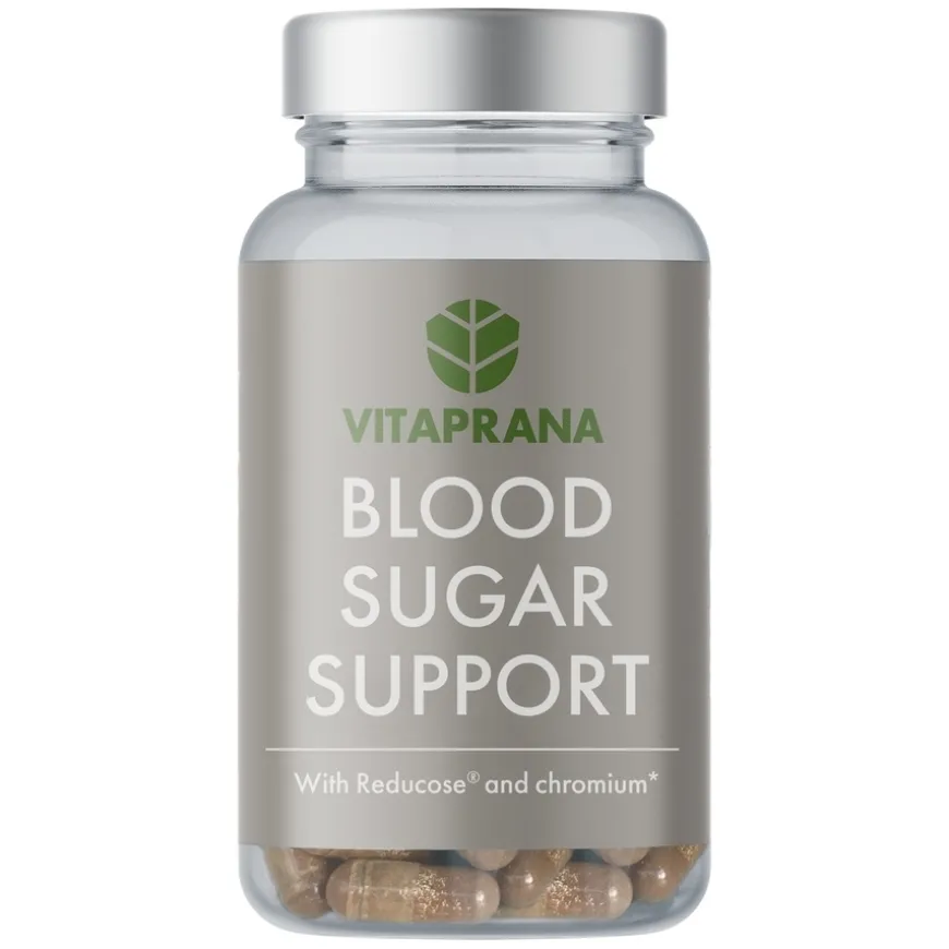 Blood Sugar Support kombinerer innovativt morbærekstrakt og krom for effektiv blodsukkerregulering. Vitaprana Blood Sugar Support inneholder Reducose®, som reduserer kroppens evne til å ta opp karbohydrater fra maten, samt krom som bidrar til å opprettholde normale blodsukkernivåer. Produktet kan også bidra til å redusere sultfølelse og søtsug. Perfekt for personer som ønsker å støtte kroppens naturlige blodsukkerkontroll, spesielt i forbindelse med karbohydratrike måltider.