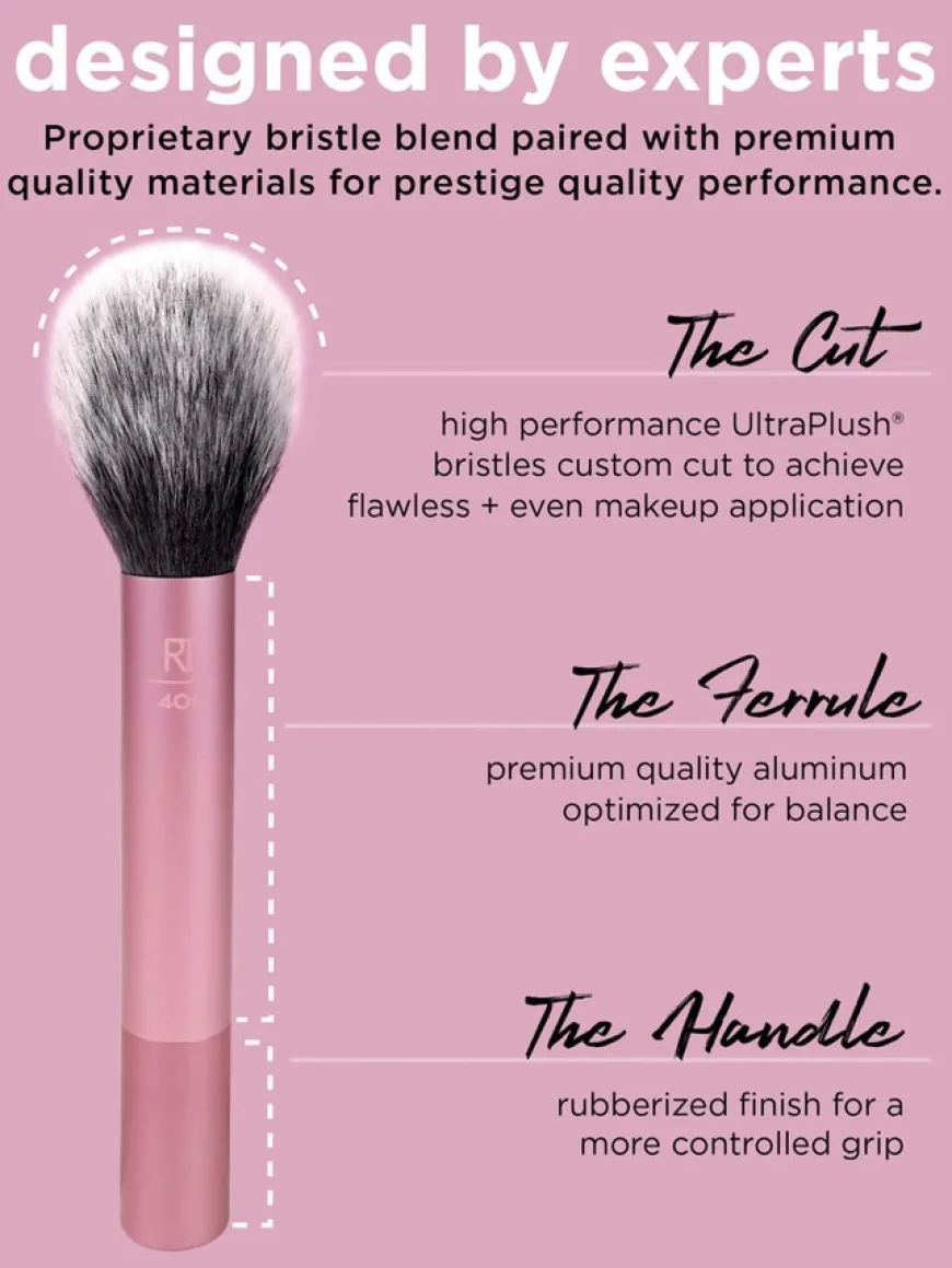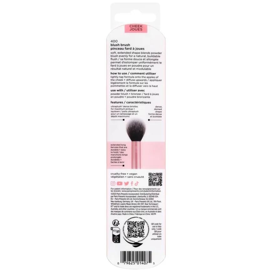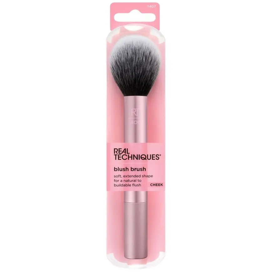 - Bruk Blush Brush for å sømløst blande din favoritt pudderblush eller bronzer.