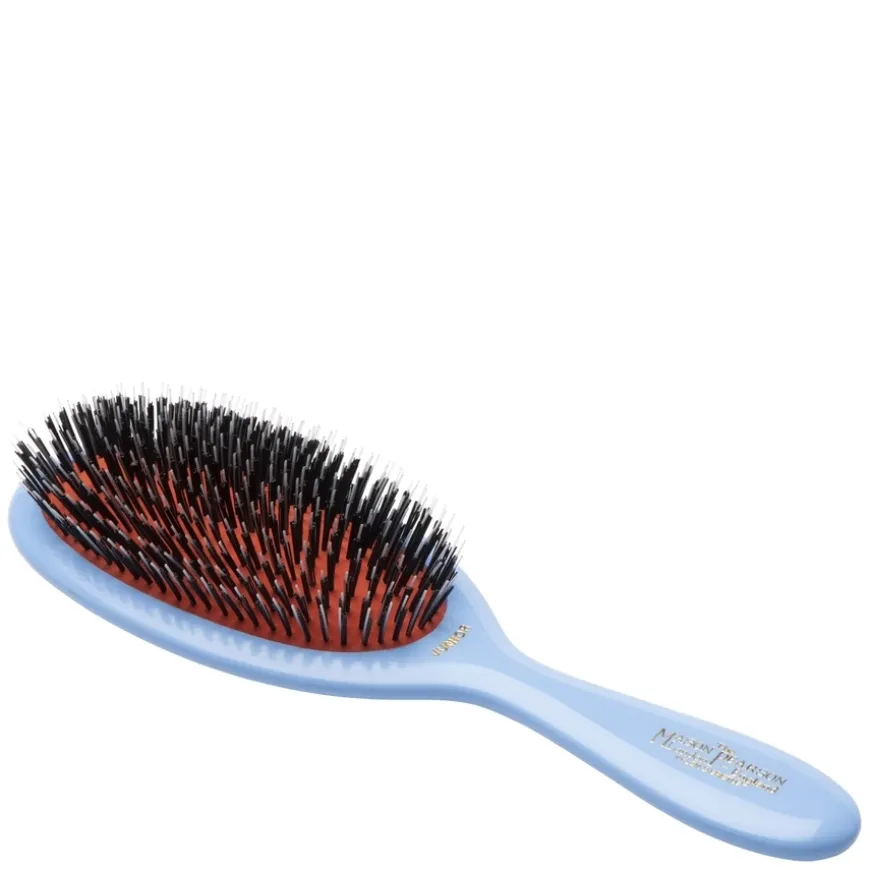 BN2 Junior er en elegant og litt mindre utgave av den ikoniske BN1 Popular-hårbørsten fra Mason Pearson. Denne luksuriøse børsten er håndlaget og kombinerer naturlige villsvinhår med nylon for effektiv flokeløsning, hodebunnsmassasje og jevn fordeling av hårets naturlige oljer. Resultatet er glansfullt, sunt og sterkt hår – hver eneste dag. BN2 Junior passer perfekt for deg med middels til tykt hår, middels til langt hår eller tett fint hår, og som ønsker en mindre børste uten å gå på kompromiss med kvalitet eller ytelse. Leveres i fire ikoniske farger og en elegant retroinspirert eske.