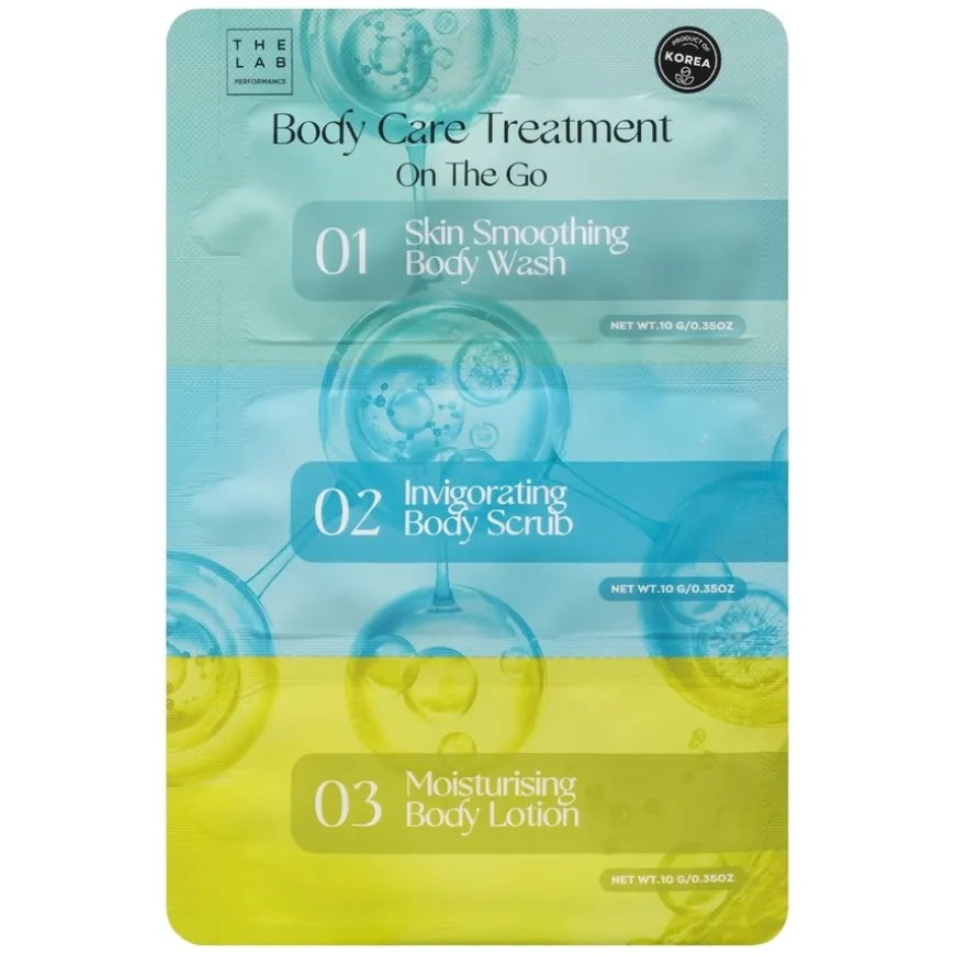 Body Care Treatment On-The-Go er et komplett kroppspleiesett i reisestørrelse med tre trinn: dusjsåpe, kroppsskrubb og fuktighetskrem. Settet er utviklet for effektiv rengjøring og pleie av huden, og gir både friskhet og fukt på farten. Dusjsåpen rengjør huden skånsomt men effektivt, kroppsskrubben eksfolierer døde hudceller og etterlater huden jevn og myk, mens fuktighetskremen tilfører nødvendig næring og beskyttelse etter dusj. Produktene kommer i en praktisk størrelse som gjør dem perfekte til reise, skole, trening eller helgeturer. Passer alle hudtyper og er ideell som en hurtig og enkel kroppspleierutine når du er på farten.