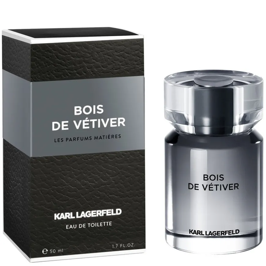 Den nye duoen til Karl Lagerfeld heter Les Parfums Matières som betyr duftmaterialer. Han mener at ingrediensene i duft er like viktig som materialvalg innen fashion. Bois De Vetiver betyr vetiver og er uimotståelig frisk. Det maskuline, røffe aspektet av vetiver kan minne om følelsen av skinn. En helt ny duftopplevelse fra Karl som må oppleves.