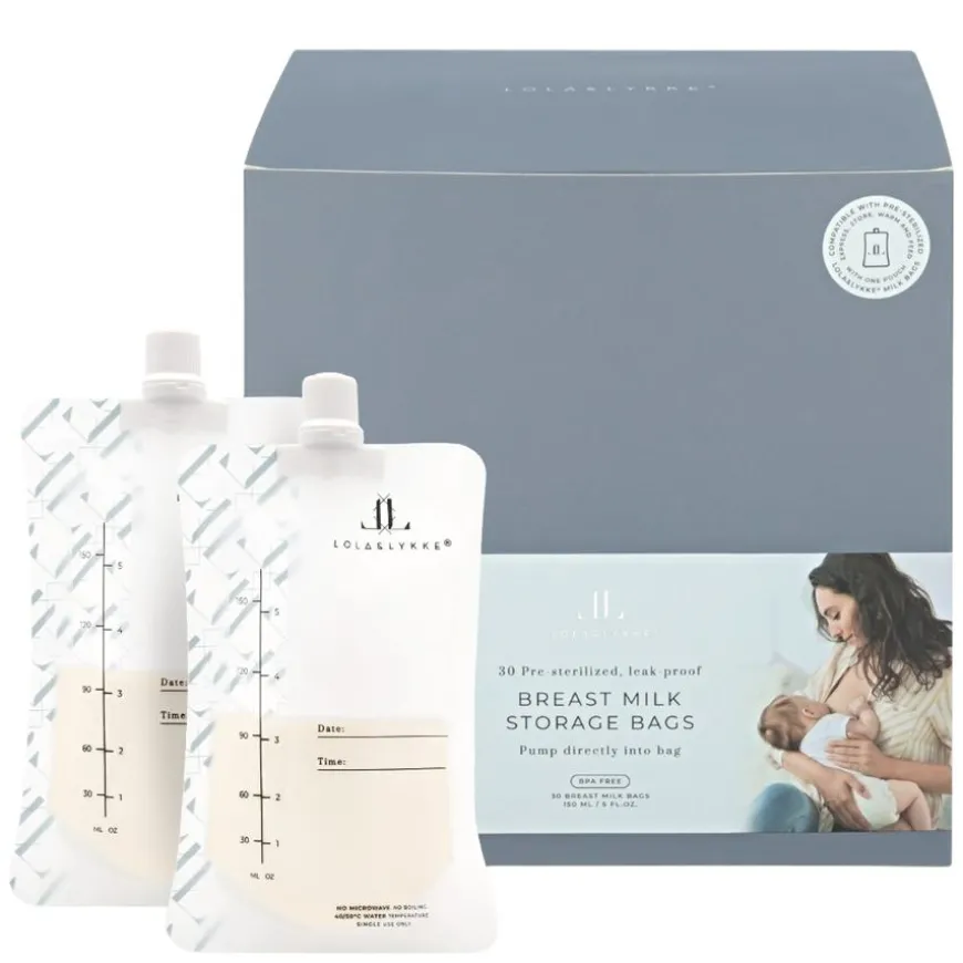 Breast Milk Storage Bags er en praktisk løsning for oppbevaring av morsmelk uten søl og overføring. Disse posene kan kobles direkte til Lola&Lykke Smart Electric Breast Pump og lar deg pumpe rett i posen. Med smarte adaptere kan du også feste en flaskesmokk direkte på posen – fra oppbevaring til mating uten ekstra trinn. Posene er forhåndssteriliserte, BPA-frie og ftalatfrie, og har dobbel forsegling og varmeforseglede kanter som sikrer trygg lagring. De kan stå oppreist for måling eller ligge flatt i fryseren for effektiv nedfrysning. Hver pose rommer opptil 150ml. Egnet for alle mødre som pumper og oppbevarer morsmelk, spesielt de som ønsker en rask og hygienisk løsning.