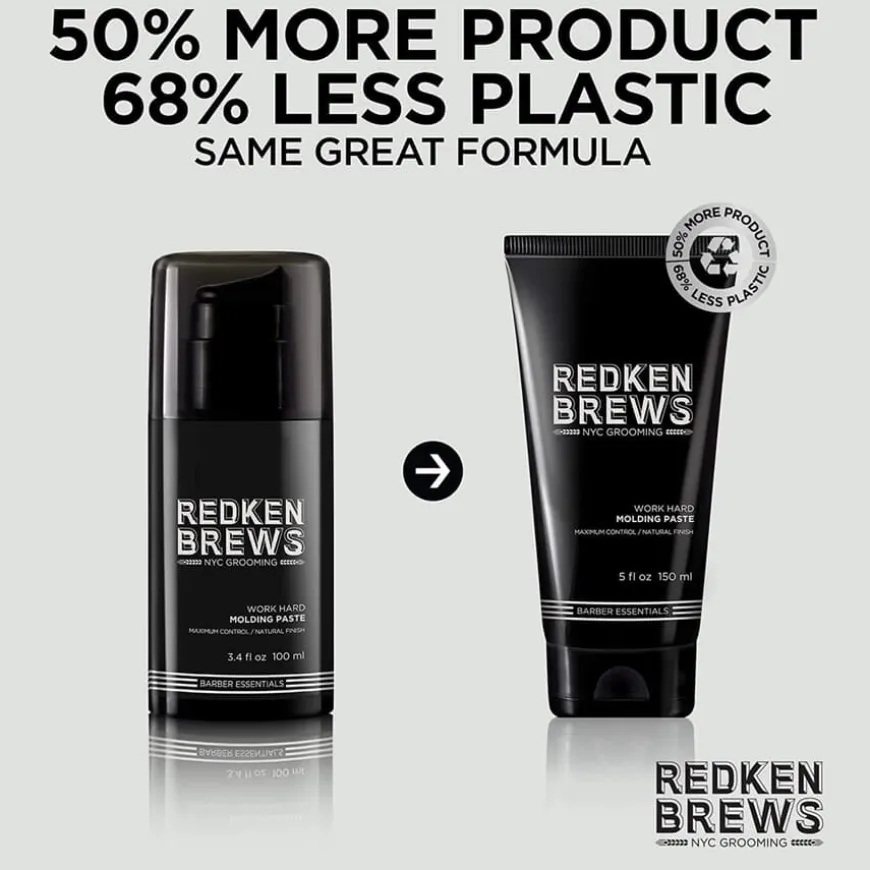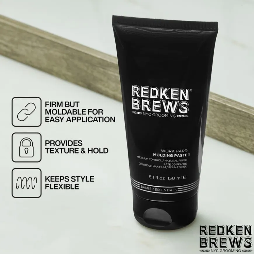 Redken Brews Molding Paste gir ekstrasterkt hold, men har en naturlig finish. Pasten er fast, men former seg lett i håret og gjør det enkelt å skape naturlige looks. Inneholder polystrethfibre som skaper en fleksibel og holdbar frisyre.