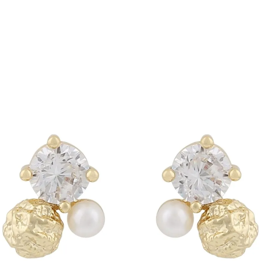 Brittany Small Earring fra Snö Of Sweden er små, elegante øredobber som kombinerer en skinnende stein, en syntetisk perle og et teksturert metalldetalj for et sofistikert uttrykk. Disse gullbelagte øredobbene utstråler både femininitet og stil, og gir en fin balanse mellom klassisk og moderne. Perfekt for deg som ønsker et dekorativt, men samtidig diskret smykke. Passer til både hverdagsantrekk og festlige anledninger.