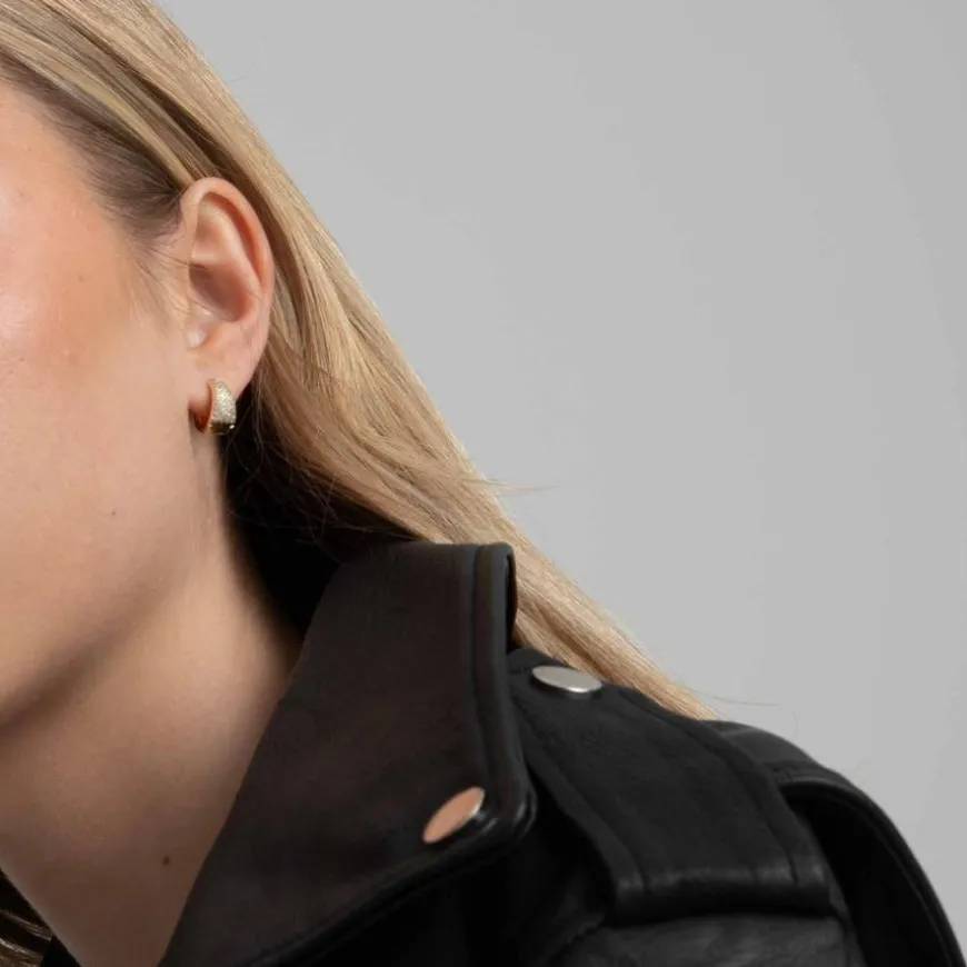 Brooklyn Oval Ring Earring er et par stilige og allsidige chunky hoop-øredobber fylt med gnistrende cubic zirkonia-steiner. Størrelse: 13 mm. Bredde: 7 mm. Nikkeltestet.
