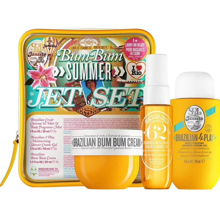 Bum Bum Jet Set er et flott reisesett som inneholder Sol de Janeiros bestselgere klare til reisei reisevennelig mini – versjon!Bum Bum elskere vet at bruk av denne trioen gir en vanedannende myk hud og uimotståelig duft.