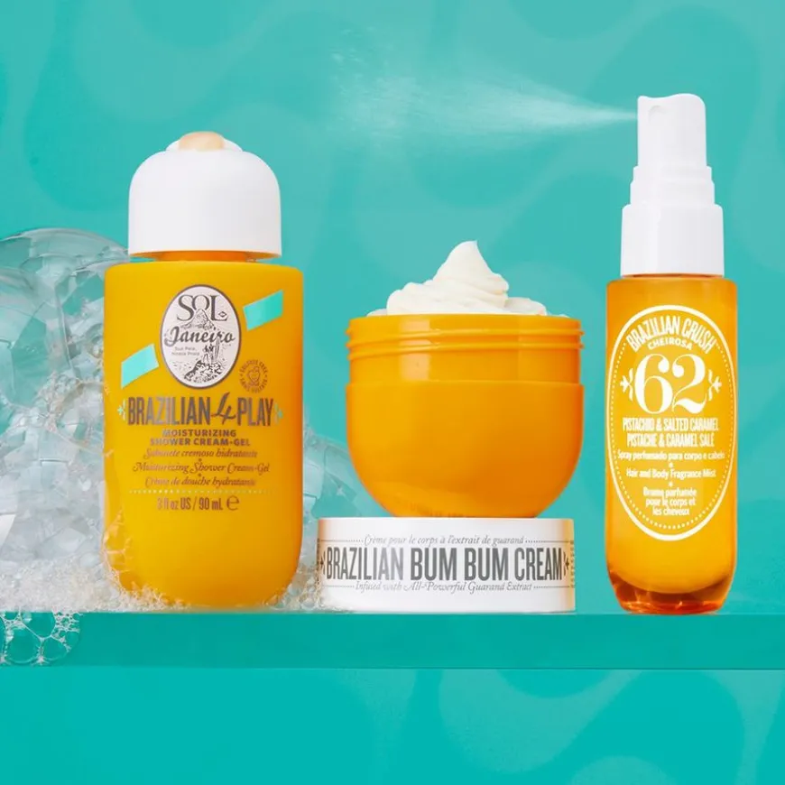 Brazilian Crush Cheirosa 62 Perfume Mist: SD Alcohol 40-B (Alcohol Denatured), Aqua (Water, Eau), Parfum (Fragrance), Benzyl Alcohol, Benzyl Salicylate, Hydroxycitronellal, Coumarin, LimoneneBrazilian Bum Bum Cream: Aqua (Water, Eau), Methyl Glucose Sesquistearate, Phenyl Trimethicone, Dodecane, Caprylic/Capric Triglyceride, Glyceryl Stearate Citrate, Parfum (Fragrance), Cetearyl Alcohol, Sodium Hyaluronate, Cocos Nucifera (Coconut) Oil, Euterpe Oleracea Fruit (Açaí) Oil, Theobroma Grandiflorum (Cupuaçu) Seed Butter, Bertholletia Excelsa (Brazil Nut) Seed Oil, Daucus Carota Sativa (Carrot) Seed Oil, Paullinia Cupana (Guaraná) Seed Extract, Ilex Guayusa Leaf Extract, Ilex Paraguariensis Leaf Extract, Bixa Orellana Seed Extract, Tocopherol, Squalane, Sorbitan Isostearate, Sodium Phytate, Sodium Stearoyl Glutamate, Glyceryl Caprylate, Hydroxyethyl Acrylate/Sodium Acryloyldimethyl Taurate Copolymer, Ethylhexylglycerin, Glycerin, Xanthan Gum, Cetyl Alcohol, Phenoxyethanol, Mica, Benzyl Alcohol, Benzyl Salicylate, Citral, Coumarin, Hydroxycitronellal, LimoneneBrazilian 4 Play Moisturizing Shower Cream-Gel: Aqua (Water, Eau), Cocamidopropyl Betaine, Sodium Cocoyl Isethionate, Parfum (Fragrance), Acrylates Copolymer, Cocamide MIPA, Glycol Stearate, Cocos Nucifera (Coconut) Oil, Theobroma Grandiflorum (Cupuaçu) Seed Butter, Euterpe Oleracea (Açaí) Fruit Oil, Tocopherol, Coconut Acid, Caprylyl Glycol, Sodium Isethionate, Magnesium Sulfate, Guar Hydroxypropyltrimonium Chloride, Ethylhexylglycerin, Sodium Phytate, Isopropanolamine, Sorbic Acid, Sodium Chloride, Phenoxyethanol, Citric Acid, Sodium Hydroxide, Benzyl Salicylate, Coumarin, Hydroxycitronellal, Limonene, Caramel, CI 19140 (Yellow 5).