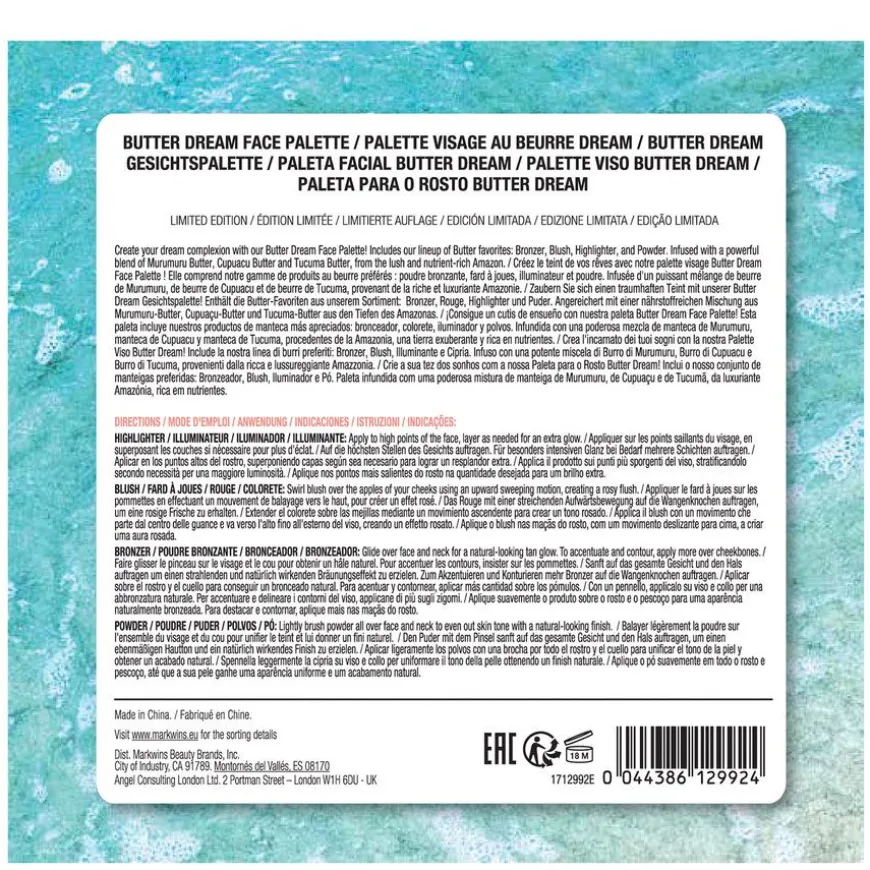 Butter Dream Quad Palette er en nydelig palett som inneholder bronzer, blush, highlighter og pudder. Den er beriket med en kraftig blanding av Murumuru-smør, Cupuaçu-smør og Tucuma-smør, fra den frodige og næringsrike Amazonas, noe som gir huden intens fuktighet og næring. Den silkeaktige teksturen smelter inn i huden for en feilfri finish og naturlig glød. Paletten er dermatologisk testet, klinisk testet og vegansk.