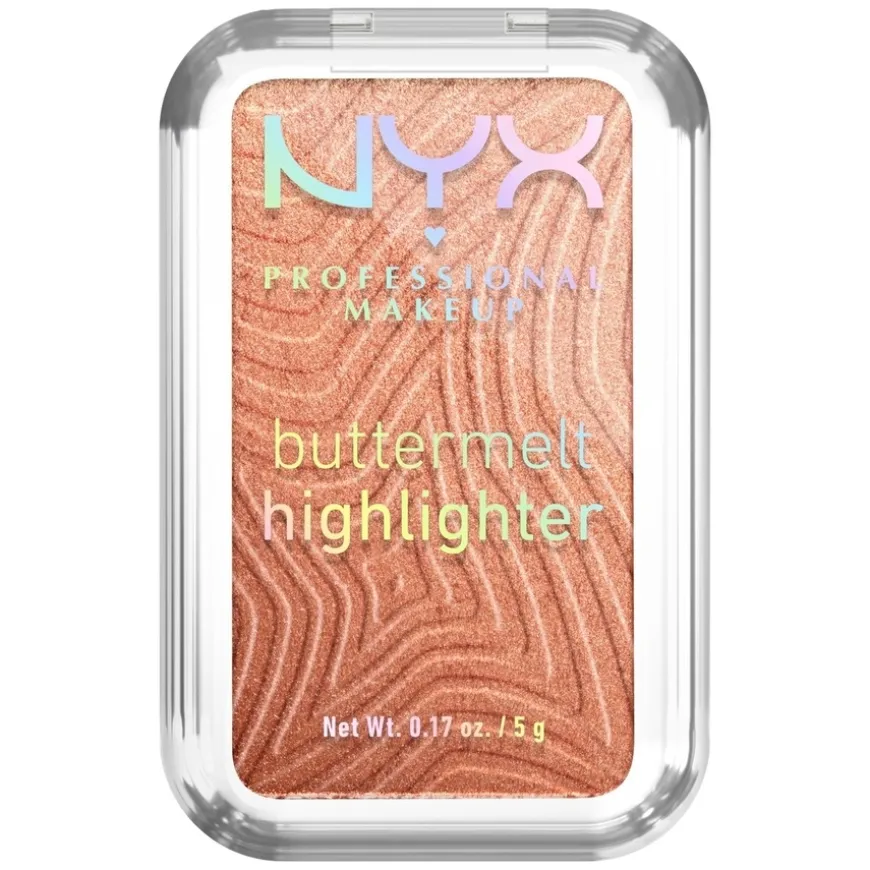 NYX PROFESSIONAL MAKEUP Buttermelt Highlighter er en glødgivende highlighter med en smørmyk formel som smelter inn i huden for en sømløs, strålende finish. Formelen er byggbar, slik at du kan skape alt fra en subtil glød til en intens highlight. Beriket med mango-, shea- og mandelsmør, som gir en kremet følelse og gjør påføringen enkel. Highlighteren sitter i opptil 12 timer, smitter ikke av og blekner ikke i løpet av dagen.