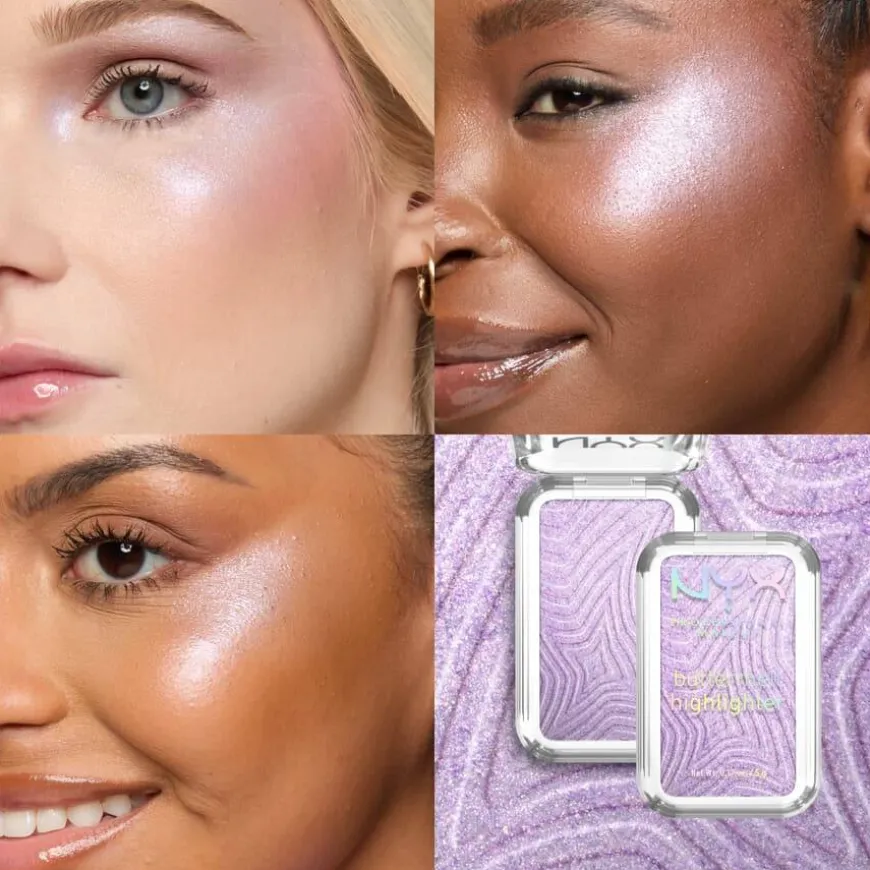 NYX PROFESSIONAL MAKEUP Buttermelt Highlighter er en glødgivende highlighter med en smørmyk formel som smelter inn i huden for en sømløs, strålende finish. Formelen er byggbar, slik at du kan skape alt fra en subtil glød til en intens highlight. Beriket med mango-, shea- og mandelsmør, som gir en kremet følelse og gjør påføringen enkel. Highlighteren sitter i opptil 12 timer, smitter ikke av og blekner ikke i løpet av dagen.