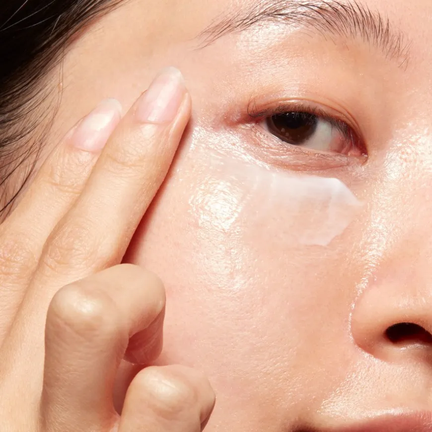 - Klapp en liten mengde krem på huden under og rundt øyet med ringfingeren.
