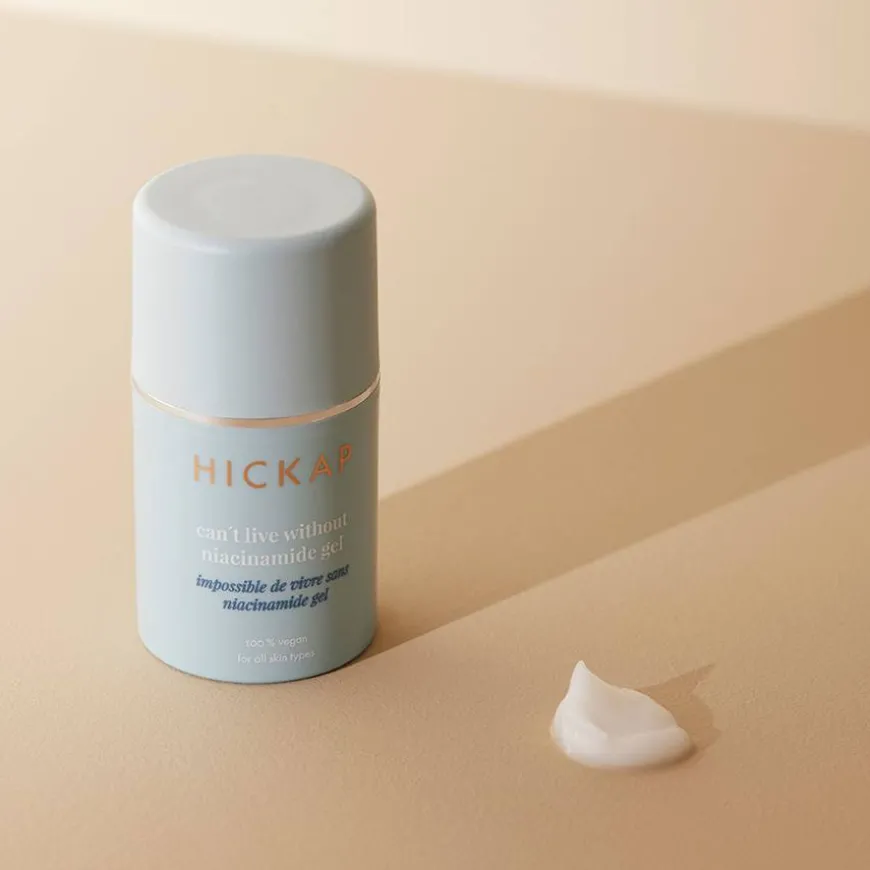 Can’t Live Without Niacinamide Gel er et universalprodukt som passer for alle! Hickaps fuktighetsgivende og barrierestyrkende gel bidrar til klarere hud med reduserte porer og utjevnet hudtone. Den beroligende gelen inneholder 5% niacinamid og 5% panthenol, og bidrar dessuten til å redusere inntrykket av rødhet og urenheter. Den lette gelkremen inneholder også hyaluronsyre og squalane, som fukter og mykgjør huden og bidrar til en fin glød.