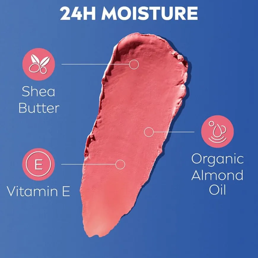 - Kremet tekstur for enkel påføring på lepper og kinn.