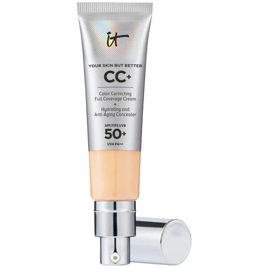 It Cosmetics Your Skin But Better CC+ Cream SPF50+ er en stor favoritt og bestselger! Den fungerer som et fuktgivende serum, en primer og dagkrem i ett og samme produkt, med skånsomme ingredienser og egenskaper. Den blir raskt et must i makeup-rutinen din når du ønsker å skape en ensartet og naturlig look, samtidig som den reduserer synligheten av porer, fine linjer og fargeforskjeller i huden. IT Cosmetics CC+ Cream er utviklet i samarbeid med hudpleieeksperter og dermatologer, noe som sikrer at produktet inneholder fordelaktige og skånsomme ingredienser for huden din.